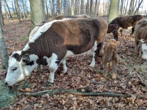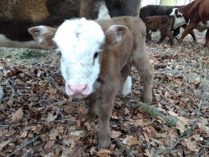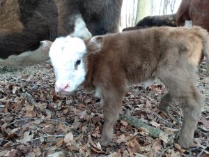 This amazing girl was born just a few hours before sundown on a night that we had negative degree temperatures, which is one of the reasons why we put the cattle in the woods during the winter. It provides wind protection for the crazy ones who decide they don’t want to be inside the barn.