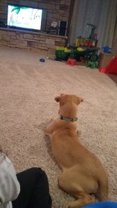 What makes fostering such a wonderful opportunity to help with local shelters is the chance to give the animal a break from the shelter while being able to learn what the animal is like in a home setting. At the shelter, there isn’t any real chance to see how the animal will do with different types of animals (like chickens), or how they will handle a crate, and so on. While Coronet was with us, we learned that she loves watching tv!