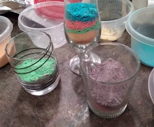 Once all of the colors are ground, get a tall/slender see through container and let your child have at it.
